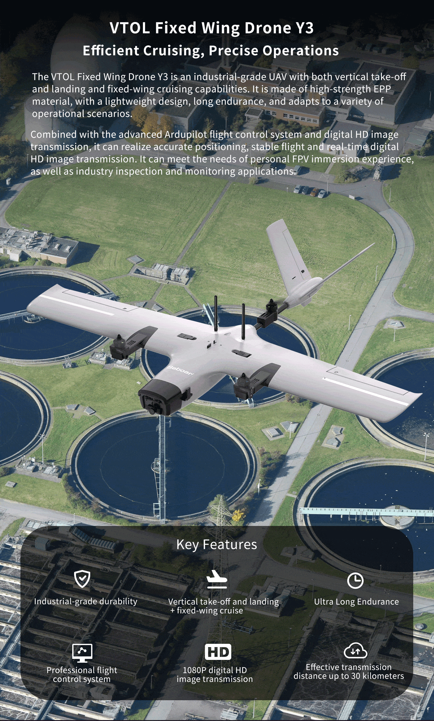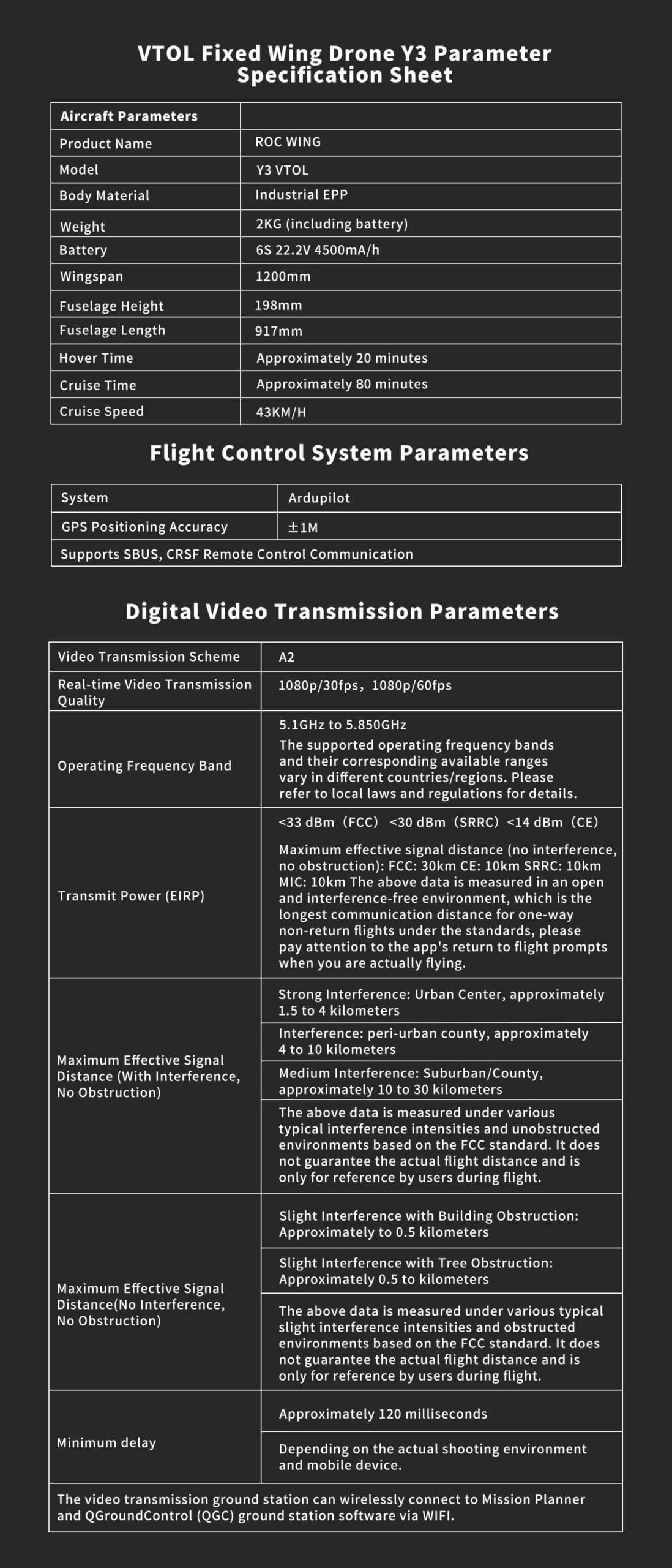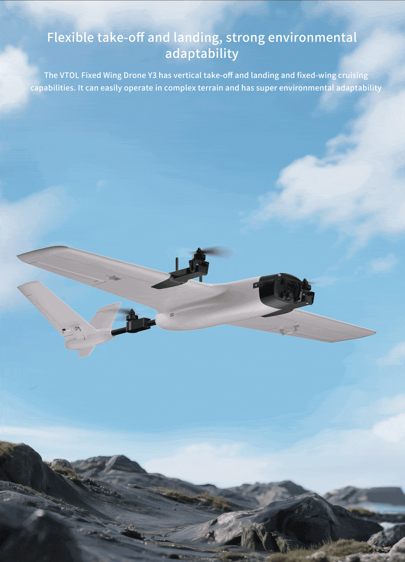 Model: Y3 VTOL Vertical Takeoff and Landing Fixed-Wing Drone